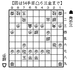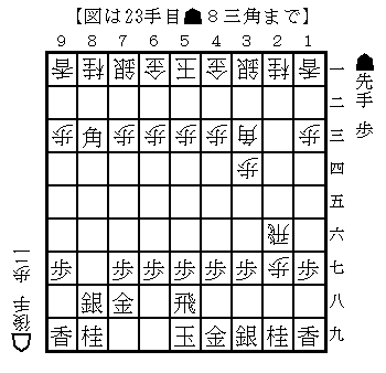 先手は銀損で角のラインに玉がいるのが辛い。