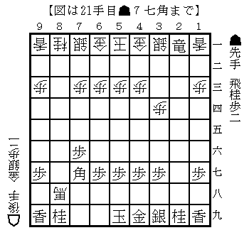 右図の駒割りは飛車と金銀の2枚換えなのだが、先手は次に▲8七飛がある。(▲8三飛は△9九馬▲同馬△8二香がある)