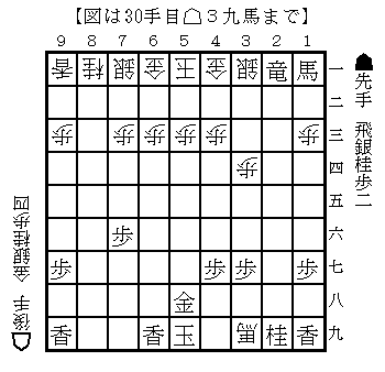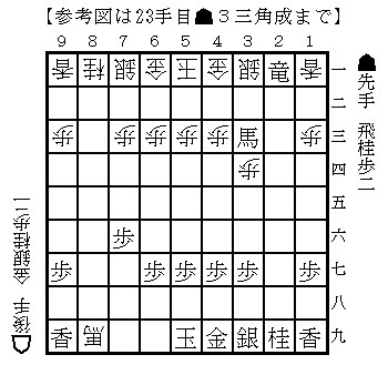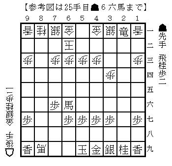 B級戦法の達人では左上図に△同馬が最善となっているのだが、データベース上は3局のみで、△8九馬は36局となっており、今回の変化は後手も臨むところなのだろう。勝敗は五分五分である。