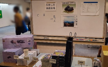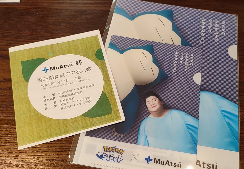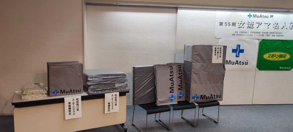 スポンサーのムアツプラス、寝具メーカーということもあり、入賞の商品は寝具、将棋連盟で使われている座布団などなど。また抽選会もあり中にはホテルペアチケットもあります。