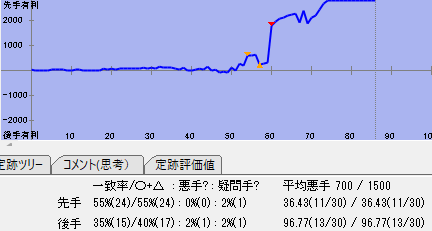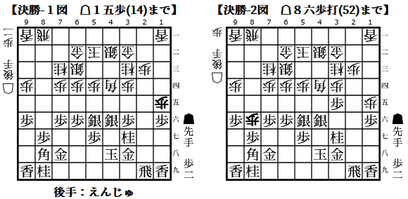 ◆決勝戦は畠山さん。私の後手で相掛かりとなった。変態戦法を期待したのだが普通の展開。評価値を見ると畠山さん悪手0%。変化の余地が少なく自然に指されて負けでした。
