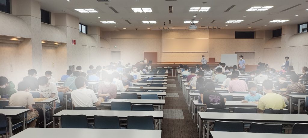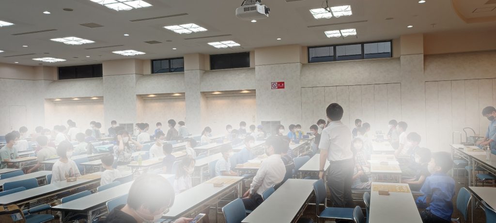 写真はA・B・C級の会場、女流アマ名人戦クラスは一つ上のフロアでした。各机には衝立がありコロナ対策がされていた。