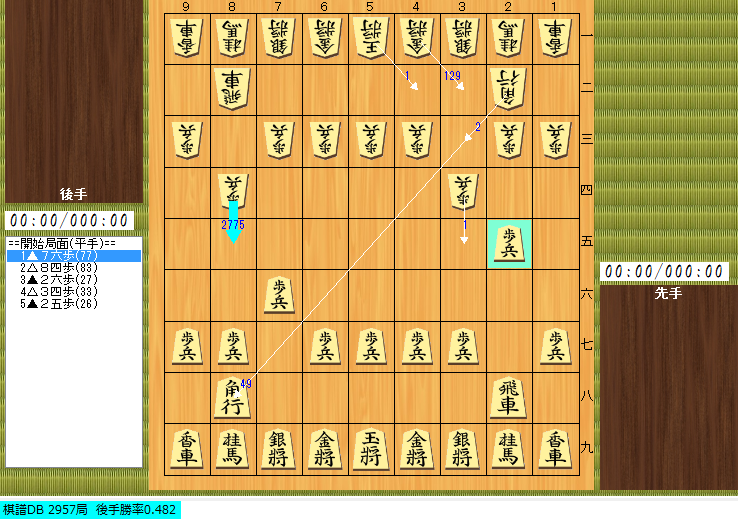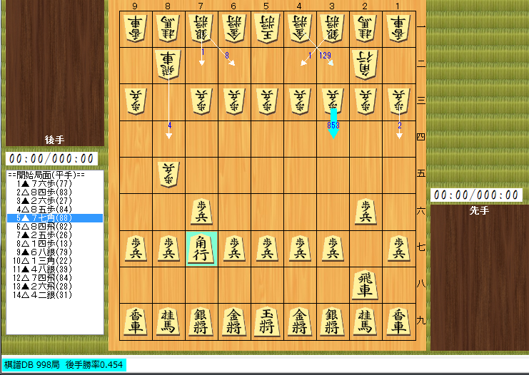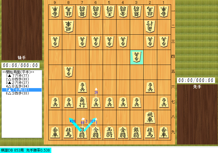 開始局面(0手局面)にすれば下のように詳細情報を見ることもできます。