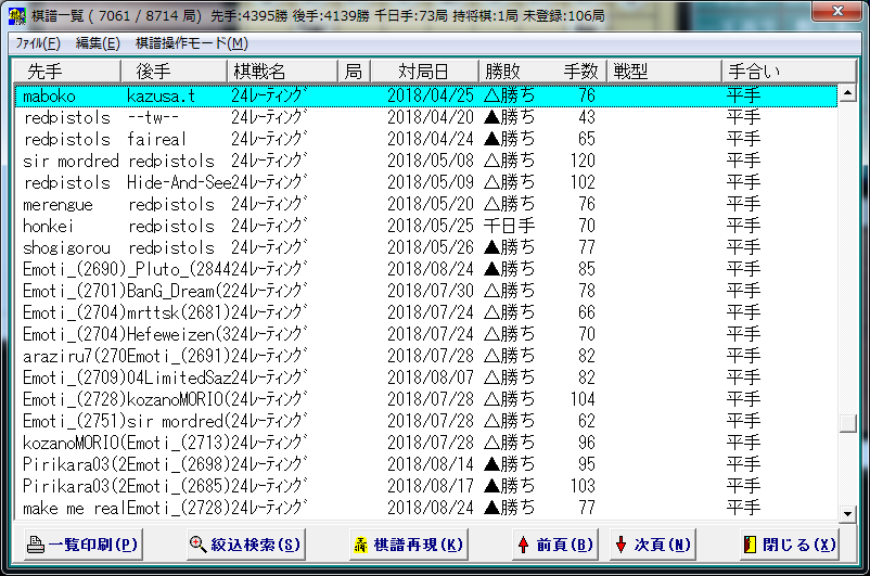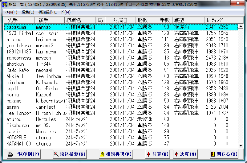 - 棋譜一覧にある棋譜検索