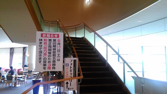 正面玄関ロビーには過去のタイトル戦の写真が飾られています。毎年違うものが飾られている気がするので定期的に入れ替えをしているようだ。