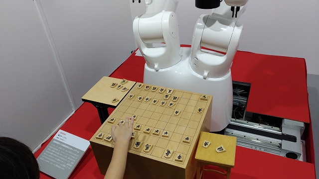 電王手くん、電王手さん、そして展示されていたのは、「電王手一二さん」以前、豊田のホテルフォレスタにて棋聖戦にあわせ電王手さんが展示されていたが、電王手さんと違いダブルアーム+横スライド機能がついていました。駒の認識、指すスピードも速く見てて面白かったが娘たちが怖かったようで下写真で1手指したら抱き着いてきましたwww