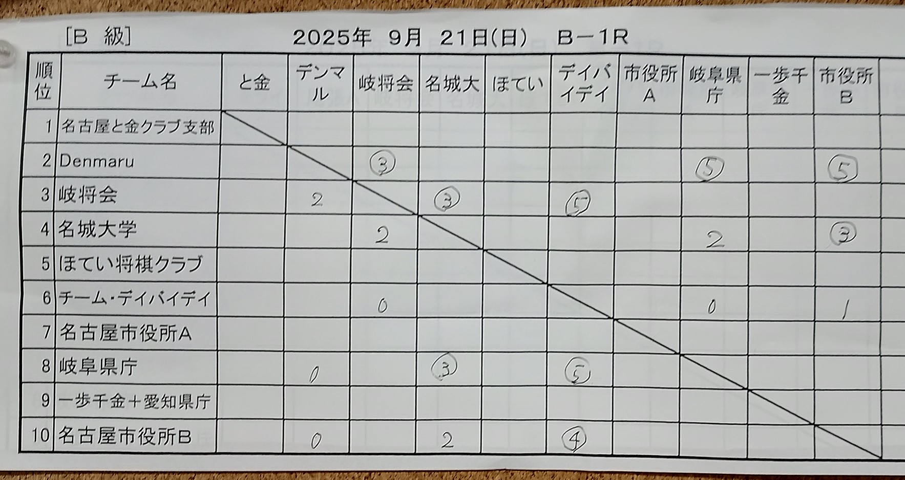 09月28日は第94回東海団体リーグA級、1日目でした。初日から前回2位だったNANZAN、また強豪名古屋大学と対戦。2-1ならと臨んだら3戦全勝でした。意外なことに優勝候補NANZANはこの日3連敗。2日目11/16は東海アマ王将戦と被っておりメンバーが揃うか厳しいが連続優勝なるか?