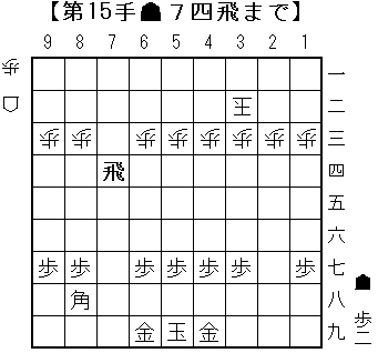 上の3点に重点を置いて10局くらい指しました。下の9手目のように十字飛車の準備をして15手目に飛車を転回!竜を作って王手して馬で詰ますことができました。次は8枚落ちを指す予定です。