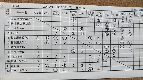 昇級するには一歩千金A、名古屋大学OB会に勝つのが必須。4戦あるため途中で昼食休憩があります。