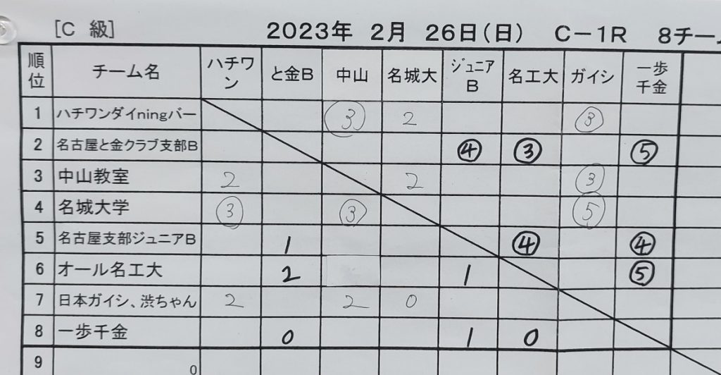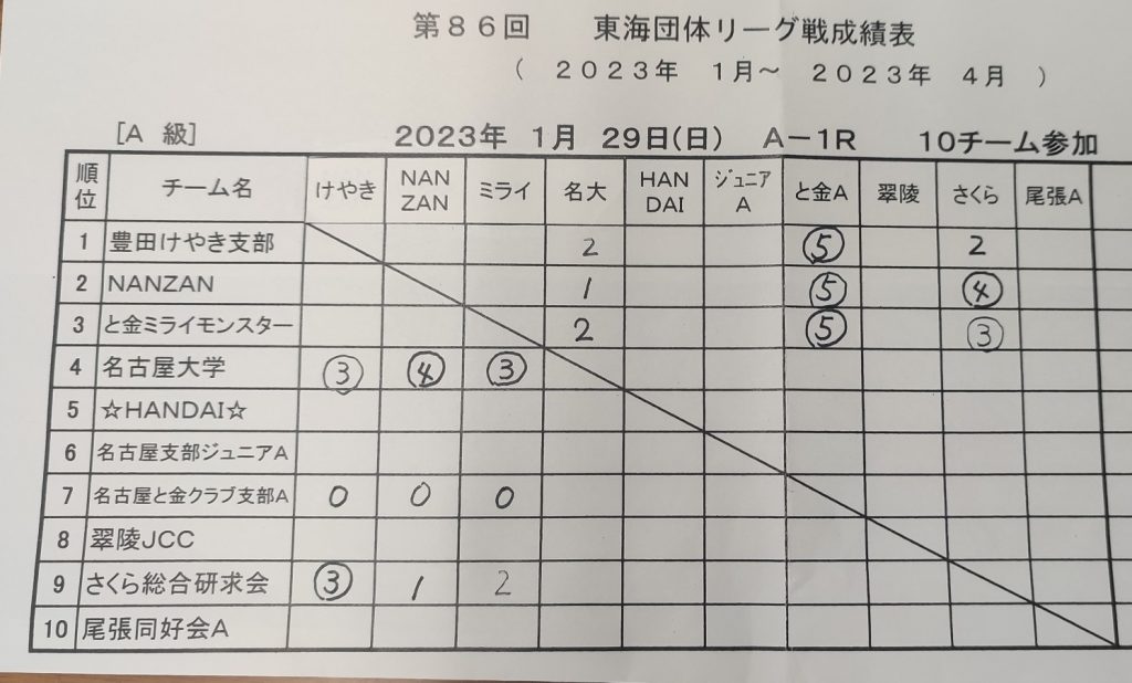 - 16日(日)東海団体リーグ(愛旅連ビル3F)