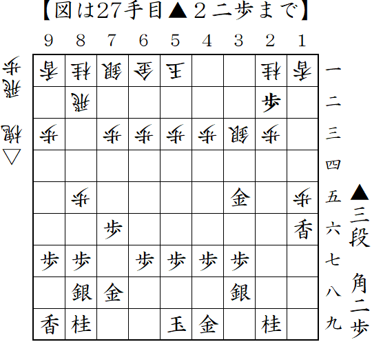 26日2局目は千日手でこれは第3局目。令和なのに平成初期の将棋。玉の硬さで攻め切って勝ち。