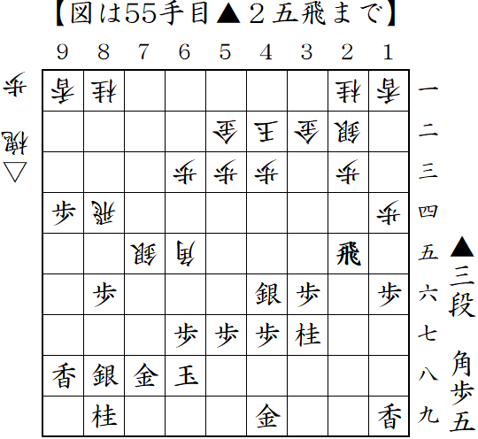 筋違い角からあっさり馬が作れた。こうなればあとは時間切れの心配のみ。以降はと金攻めが決まって勝ち。