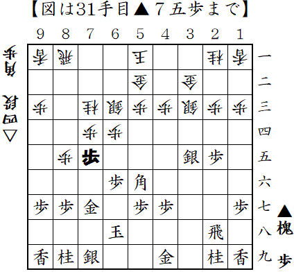 序盤早々に桂得♪石田側からの早い段階での飛車先交換では、たまに出る変化。