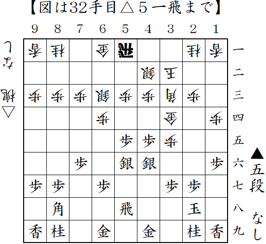 相掛かり戦でうっかり角道を開けそこなって序盤失敗。△8五飛から大立ち回りをして混戦持ち込む。最後は即詰みを逃して負けかと思ったが、時間切迫で相手も間違えて最後は勝ち。