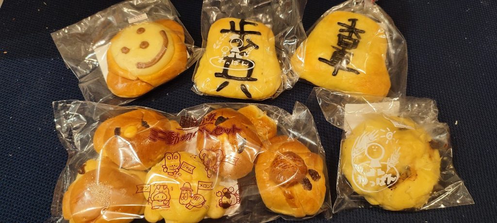 参加賞として駒形クッキーがあったのですが、朝ご飯を食べたばかりなのに次女は対局前に食べてしまいました。下の動物パンは私の準優勝の賞品と露店で売られていたパンとなります。