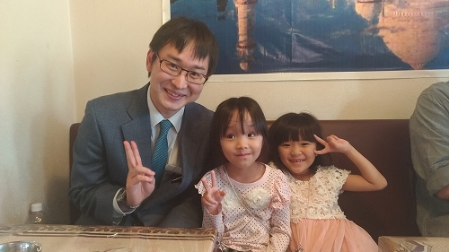 お昼は近くのインドカレー屋さんへ行ったら偶然山崎先生と遭遇し、娘達と一緒に記念撮影。急なことでしたが写真ありがとうございました。