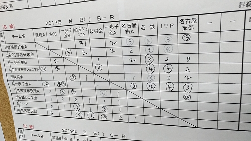 3月10日の東海団体リーグの結果は下のようにチーム1勝2敗でした。この結果B級暫定5位となりました。最終日直接対決は尾張同好会A戦のみ。全勝すれば逆転昇級の目も少しだけあります。