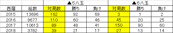 横歩取り第1図の青野流、第2図の佐々木流、この2つの戦法の採用状況を調べてみました。データは将棋倶楽部24の2000点以上+24名人戦にて収集した棋譜から調べました。