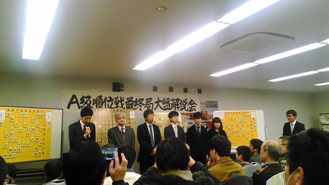 毎年恒例の第75期A級順位戦最終局解説会に来てます。名古屋の栄将棋教室横のイベントスペース。18時開始でリアルタイム更新。今回の目玉は、藤井新四段の、「はじめての解説」!
