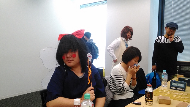 個人戦、支部団体戦、指導対局、公開対局に、盛りだくさんの2日だったようです。山形県天童市より駒師が来場し、娘にアンパンマン駒を作ってもらいましたが、乾く前に触ったため写真のようになってしまった・・・。団体戦ではハロウィンということもありコスプレして参加する団体もいたようです。