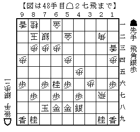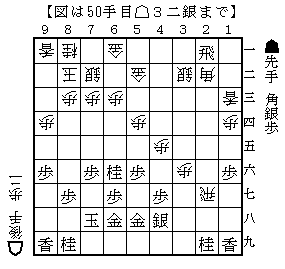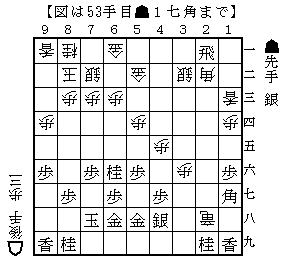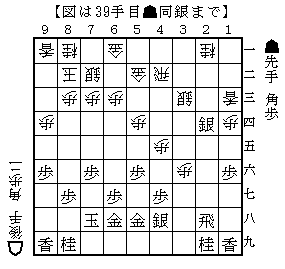 のちのち右図が分岐点であることがわかるのだが、後手がストレートに角銀交換した場合を進めてみる。・・・続く