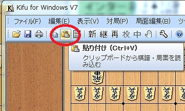下中図:画像の赤丸を押すか「Ctrl」+「V」でコピーした棋譜を貼り付ける。
