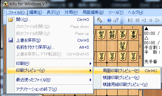(2)上図のファイル→印刷プレビュー→局面印刷プレビュー