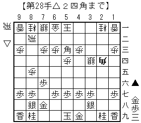 先手が▲2三角成△3四角に▲同馬△同銀▲5三角△2四角で左上図。後手は△2四角と打ちたくないところだが今のところいい手が無さそうだ。