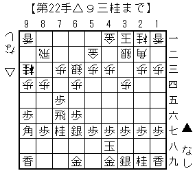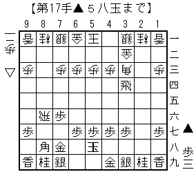 2012年から先手番で横歩取りのときは青野流を多用している。青野流の特徴は、左上図の▲5八玉から右の金銀をそのままに右桂を活用するところにある。