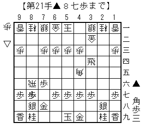 定跡手順は図の▲8七歩に変えて▲2四飛であるが