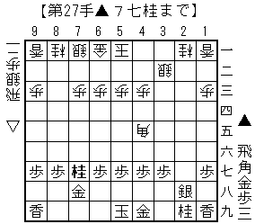△7六飛▲7七銀△同飛成▲3二飛成△同銀▲7七桂 右図