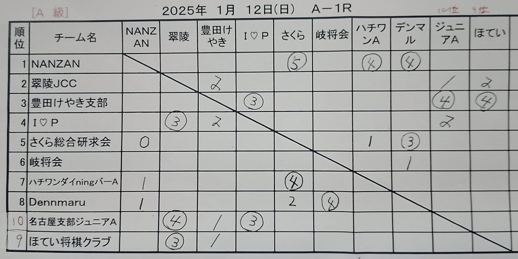最終戦も負けてしまったが、ハチワンダイningバーAが負けであったため7位でA級残留となった。