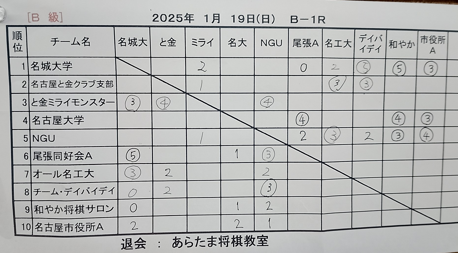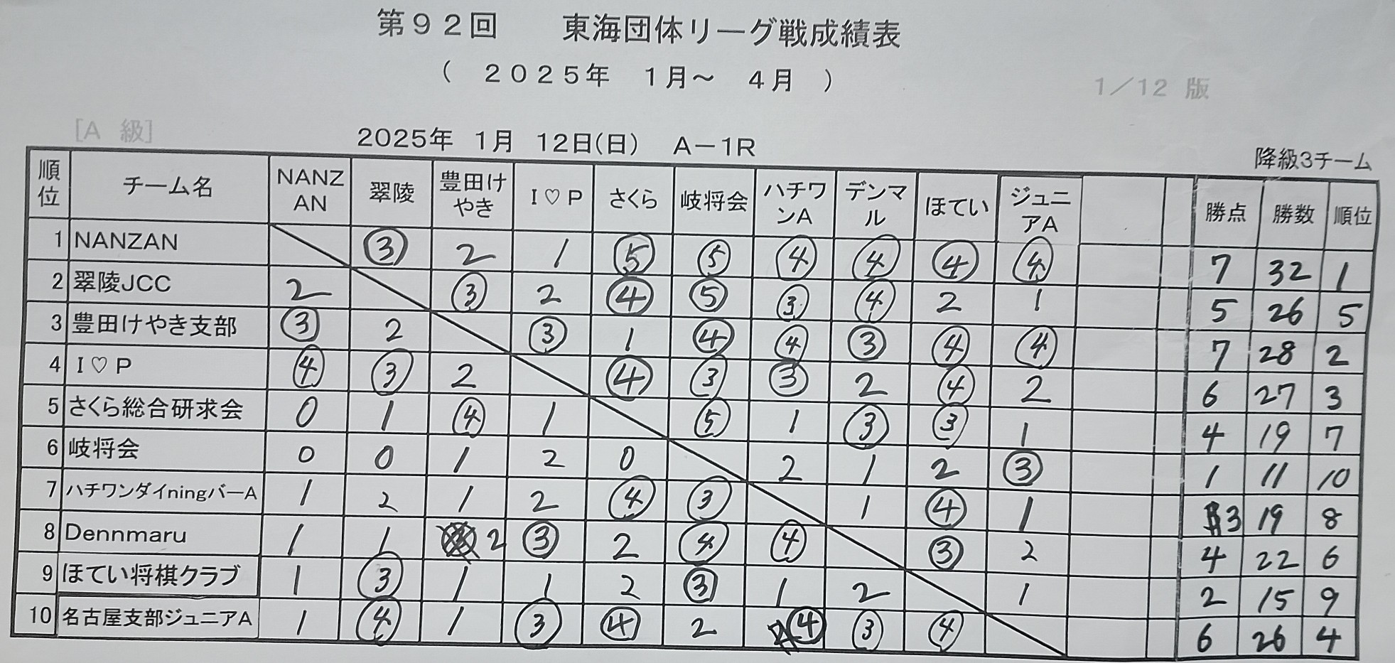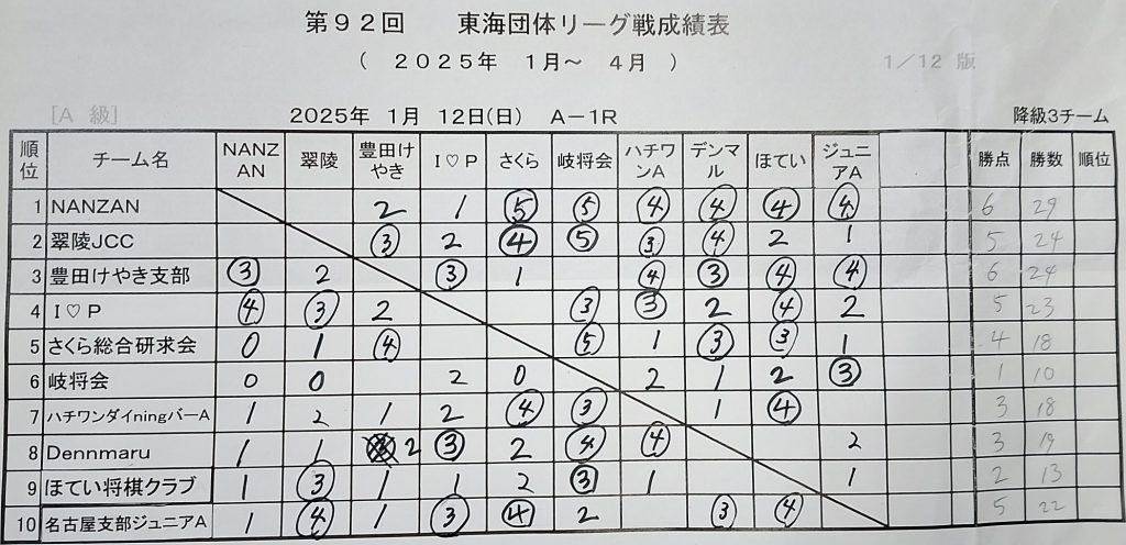 2025年03月16日は第92回東海団体リーグA級2日目。初日1-2だったため降級を避けるためには2勝以上必須と考えていたがチーム3-0の好成績であった。