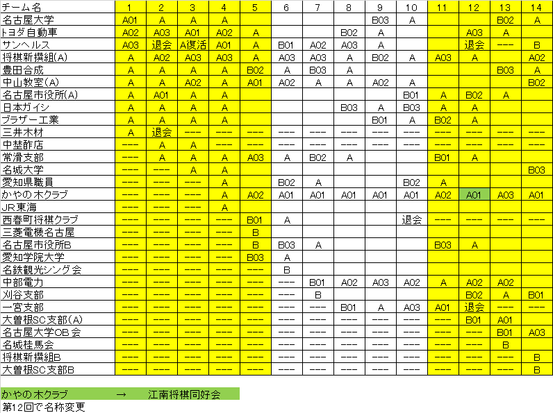名城香車会のチーム変更が正確な変更時がわからなかったため「?」としています